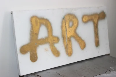 From my very own personal art collection! A double-sided gritty street art project. A Bretony McGee original, and one of a kind piece, hand gratified with golden spray paint and black tracing.